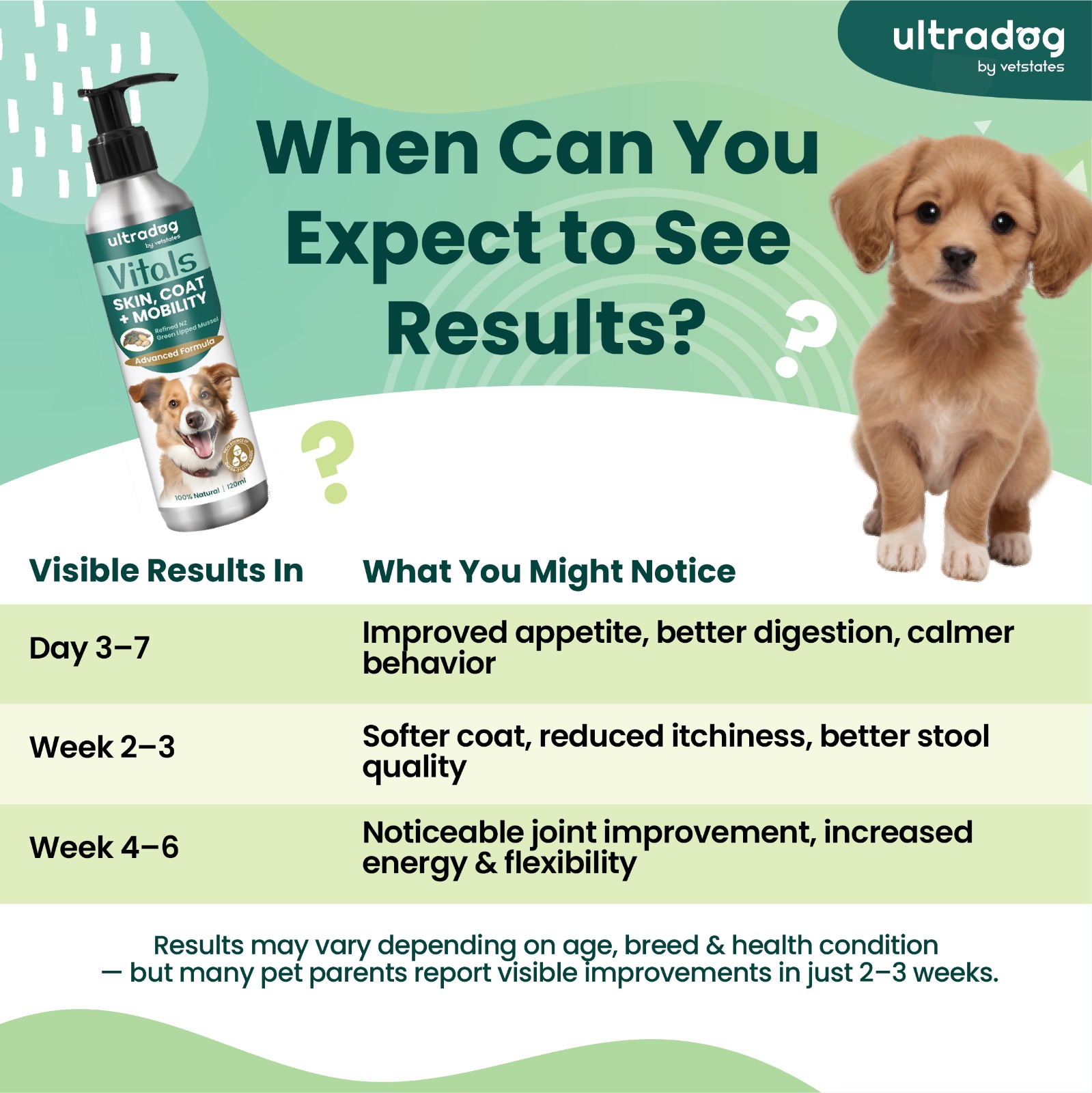 | Week 2–3 | Shinier coat, less shedding, more energy during walks |
